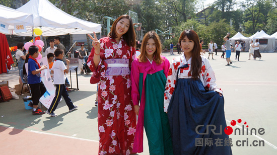 虽然学园祭是日韩共有的传统活动,但也有各自的特色。日本留学生会爱语会的高原伸子说,和这里相比,日本的学园祭规模更大,除了有露天的展台,还会有一些展台布置在室内。来自韩国的李晟瑗说,在韩国,他们会邀请当红明星来招揽人气,能吸引很多外校的同学。