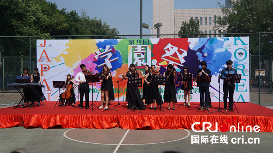 由北京语言大学外国语学部东方语言文化学院日韩学生会主办的第四届日韩学园祭22日下午在学校篮球场举行,活动旨在让中国学生领略日韩学园祭文化,促进中日韩文化交流发展,增进中日韩学生之间的友谊。