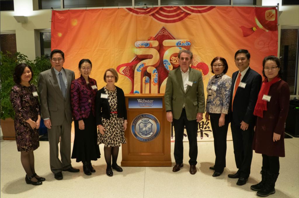 晚会开始前,韦伯斯特大学孔子学院美方院长李淑萍女士主持了答谢招待会。圣路易斯华助中心主任朱一民,韦伯斯特大学校长伊丽莎白·斯卓波(Elizabeth Stroble)女士,韦伯斯特大学教务长、副校长兼首席运营官朱利安·舒斯特(Julian Schuster)博士,中国驻芝加哥总领馆陈盈晖参赞分别就 “美国开放的未来”,“多族裔社会的美国” “圣路易斯-南京友好城市建交40周年”等主题发表热情感言,并恭祝华人社区新春快乐。