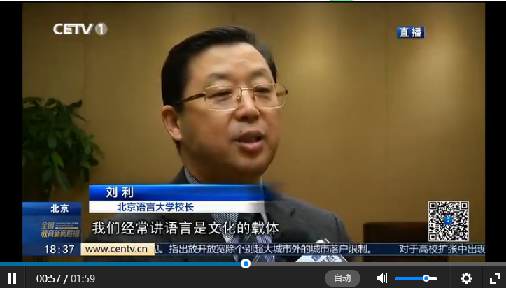 北京语言大学校长刘利:我们经常讲语言是文化的载体,其实语言本身也可以视为是一种文化,从国家的建设来讲,我们有56个民族,56个民族共存,在中国境内使用的语言就有一百多种,这些语言既是各个民族之间进行交流的工具,同时它作为一种文化的形态,一种文化资源的存在,它本身也可以作为我们研究的一个样本。