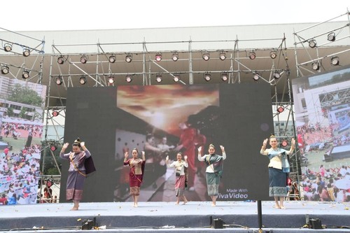各国留学生们在台上尽情演绎的同时,各国展棚也创意无限,精彩纷呈。亚洲展区前,塔吉克斯坦留学生跳起了轻快灵巧的传统舞蹈,泰国留学生身着民族服饰向观众介绍本国文化的特色。欧洲展区里,意大利小伙子用自制的相框与观众合影,丹麦姑娘们以有奖问答的形式介绍丹麦。在美洲和大洋洲展区,巴西小伙子穿上了球衣,手捧奖杯与观众合影;加拿大、美国留学生为观众准备了地道的本国美食。非洲展区中,热情的民族舞蹈、精致的手工制品、特色鲜明的服装将非洲文化传递给了每一位观众。