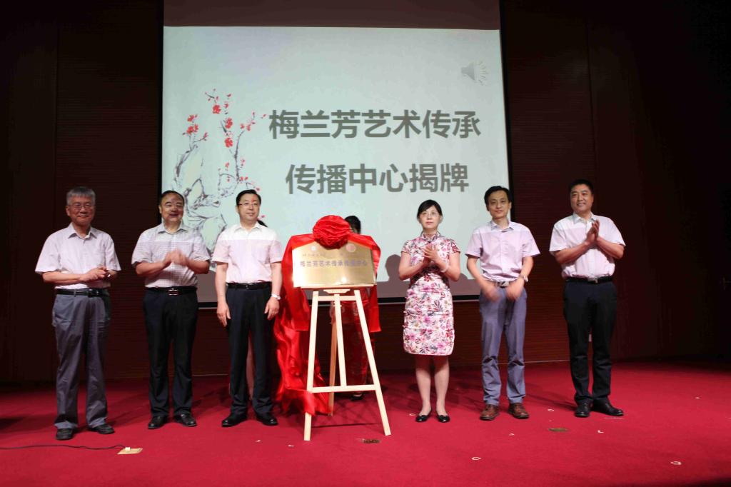 文化和旅游部艺术司副司长周汉萍、非物质文化遗产司副司长胡雁,北京语言大学校长刘利、中华文化研究院院长韩经太,梅兰芳纪念馆副馆长刘锁荣等为“梅兰芳艺术传承传播中心”揭牌。