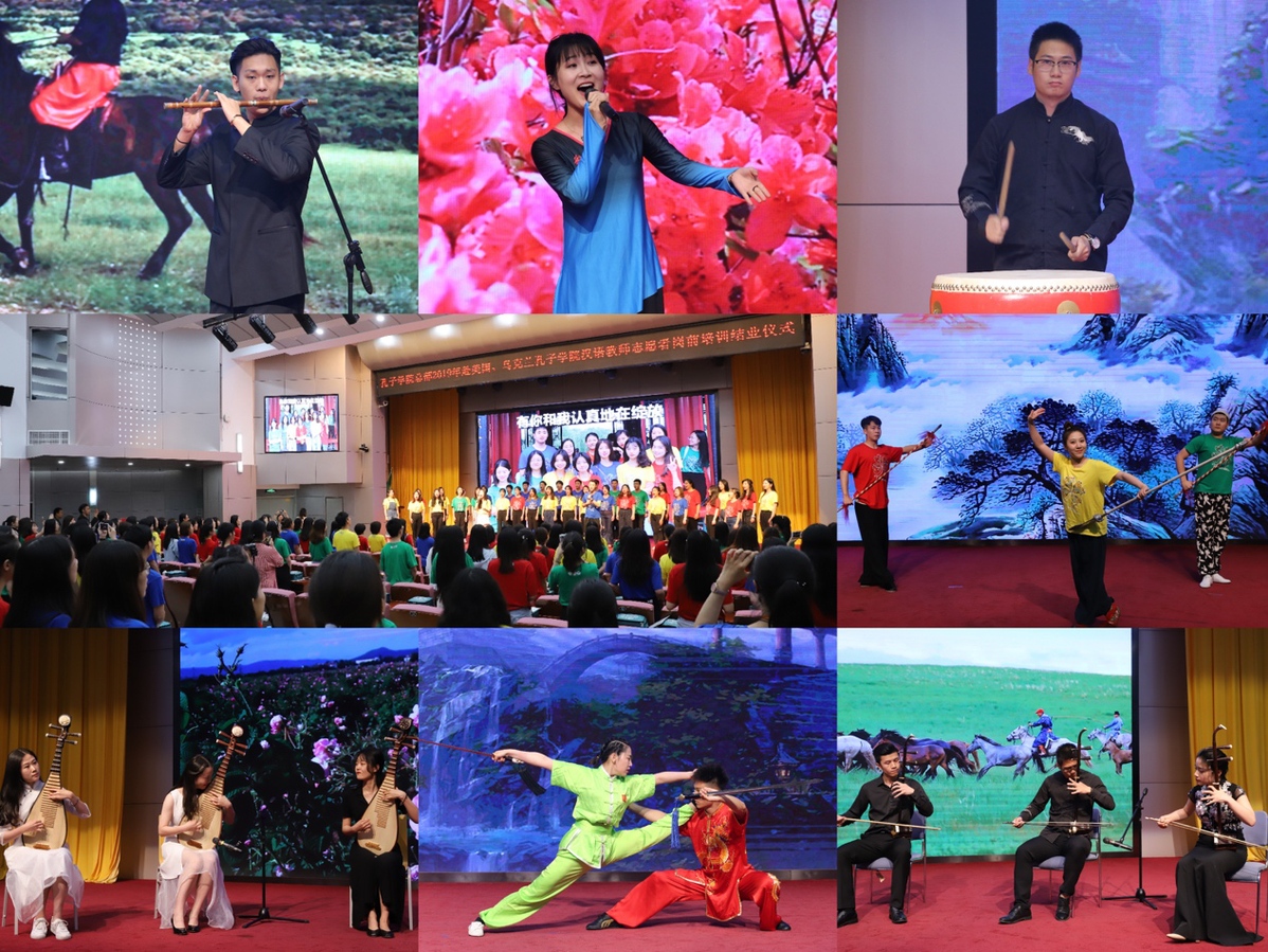 李卓副处长与贾烈英教授还在结业仪式上为学员颁发了结业证书。在表演环节中,多才多艺的学员们为台下的观众准备了丰富多彩的文艺表演:竹笛演奏的牧民新歌旋律悠扬;民歌映山红婉转绵长;武术表演随着大鼓慷慨激昂的鼓点势如破竹;京剧风采表演活灵活现,有板有眼;琵琶和二胡的乐器合奏交相辉映,余音绕梁。最后学员们一起唱响《瀚宇之花盛开》,立志为汉语在美国及乌克兰的教学与中华文化的传播努力奋斗。