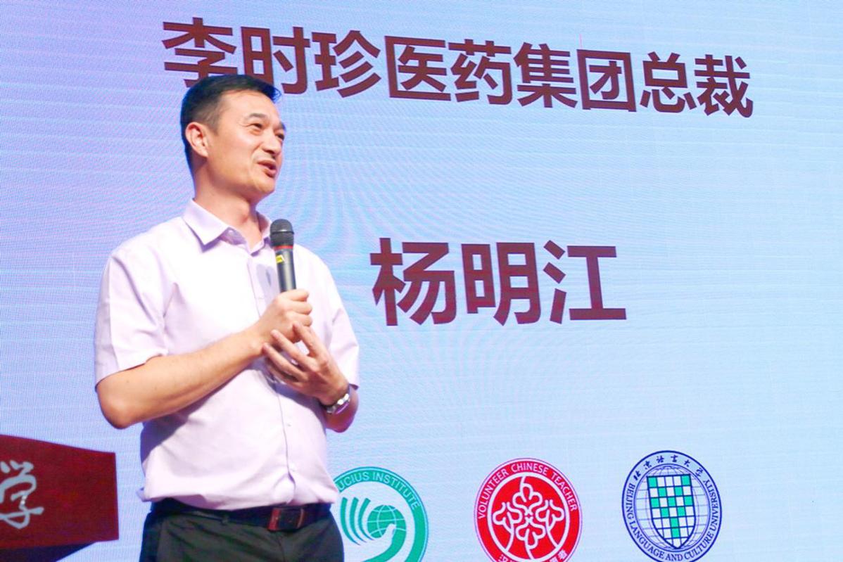 李时珍医药集团总裁杨明江先生表示,中医药文化是中国传统文化的瑰宝,李时珍的《本草纲目》曾被联合国列为世界记忆名录。他希望汉语志愿者可以将中医药带到世界,一起实现中医药走向世界的“中国梦”。