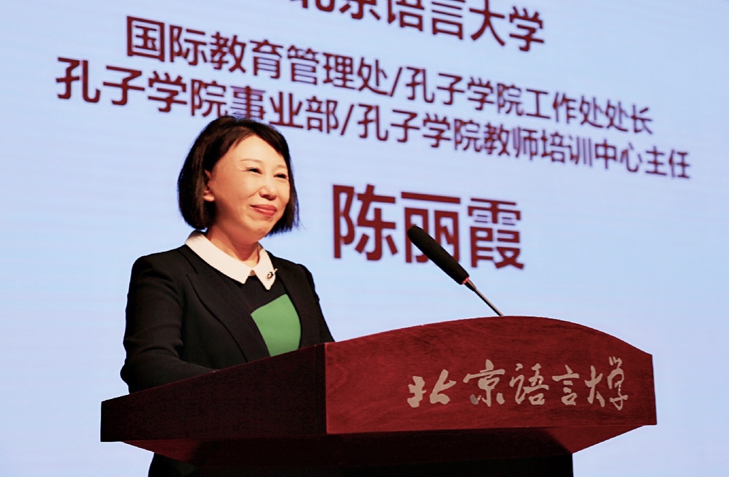 结业仪式上,北京语言大学国际教育管理处处长陈丽霞女士在讲话中表示,汉教志愿者是中国形象的窗口,是外国友人更多更好地了解中国的名片。她希望在座学员在赴任后能够不忘初心,树立对汉语国际教育事业的信心,不管国际形势如何变幻,坚定不移地肩负促进中外人民友好交往的使命。谈及汉语教学,她表示北语在对外汉语教学理念和师资培养方面有很强的优势,志愿者们将与来自海内外汉语教学、跨文化交际等领域的知名学者面对面交流,与有着丰富海外教学经验的教师朝夕相处,磨练教学技能,跟随外教进行沉浸式的训练,在中华才艺课堂上切磋学习多种多样才艺技能。在培训中亲身体验北语模式和汉语国际教育前沿理论的课程设计,“输入-输出-成果产出”的模块设计,“观摩-实践-专家点评-组内讨论-自评和互评-反思-实践-真实讲课”的循环体验模式。翻转课堂、小组圆桌会、中医体验、文化研修、海外文化活动展、教学设计活动展等交织,相信大家在北语度过了一段忙碌而充实的时光。“一次北语行,一生北语情;一次志愿者经历,一生孔院情。”陈丽霞处长期待志愿者们能在最美的韶华里,展示精彩人生。最后,她预祝志愿者们赴任后能够履新顺利、佳音频传,同时保重自己、珍惜时间。