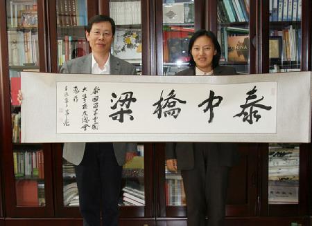 At the afternoon of April 25,BLCU president Cui Xiliang met with Vice-Chairman of Thailand alumni association Luo Tieying. Cui sent his inscription bridge between Thailand and China to Luo, to congratulate the 10th anniversary of the Thailand alumni association.