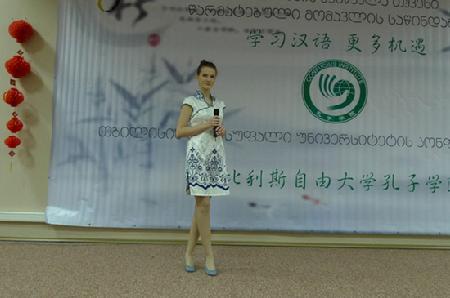 2011年11月28日,地处外高加索的格鲁吉亚首都第比利斯大雪纷飞,气温骤降,寒意逼人。半个世纪以来罕见的大雪和低温使得街上行人寥寥,步履匆匆。但在第比利斯自由大学孔子学院内却是一番中国味十足的温暖、热闹景象。格鲁吉亚第比利斯自由大学孔子学院第一届中文歌曲演唱比赛正在进行。