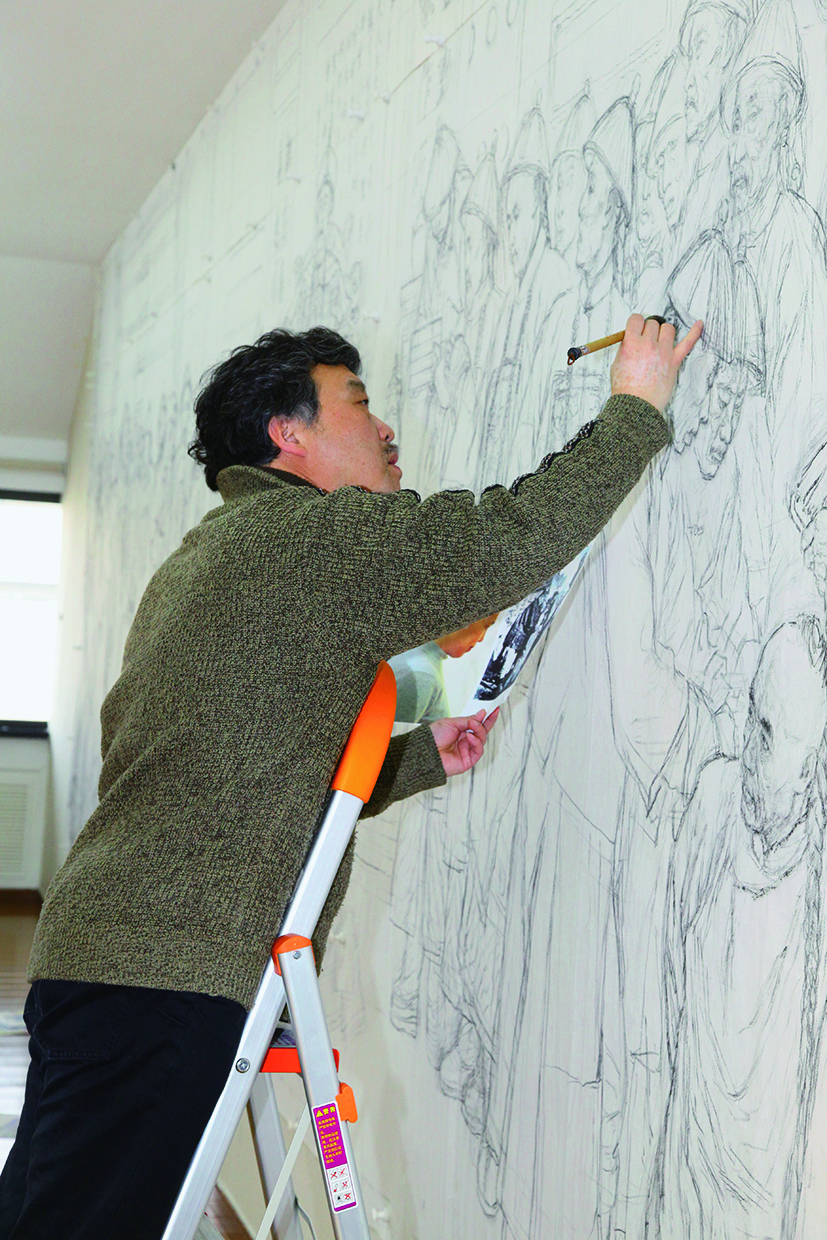 身兼教师和画家两重身份的齐鸣教授一直将“在教育中有学术思考、用艺术实践滋养教学灵性”作为对自己的要求。齐鸣教授全面掌握油画、国画、版画、雕塑等多种视觉艺术的造型理论和创作技能,在北语十多年的艺术教学中,他开设的课程涵盖素描、专业临摹、写生、主题画创作、造型语言研究等,主张通过对经典造型艺术的赏析,去体认表现技巧和方法,进而融入个性化理解,帮助学生找到适合自己未来创作的艺术语言。