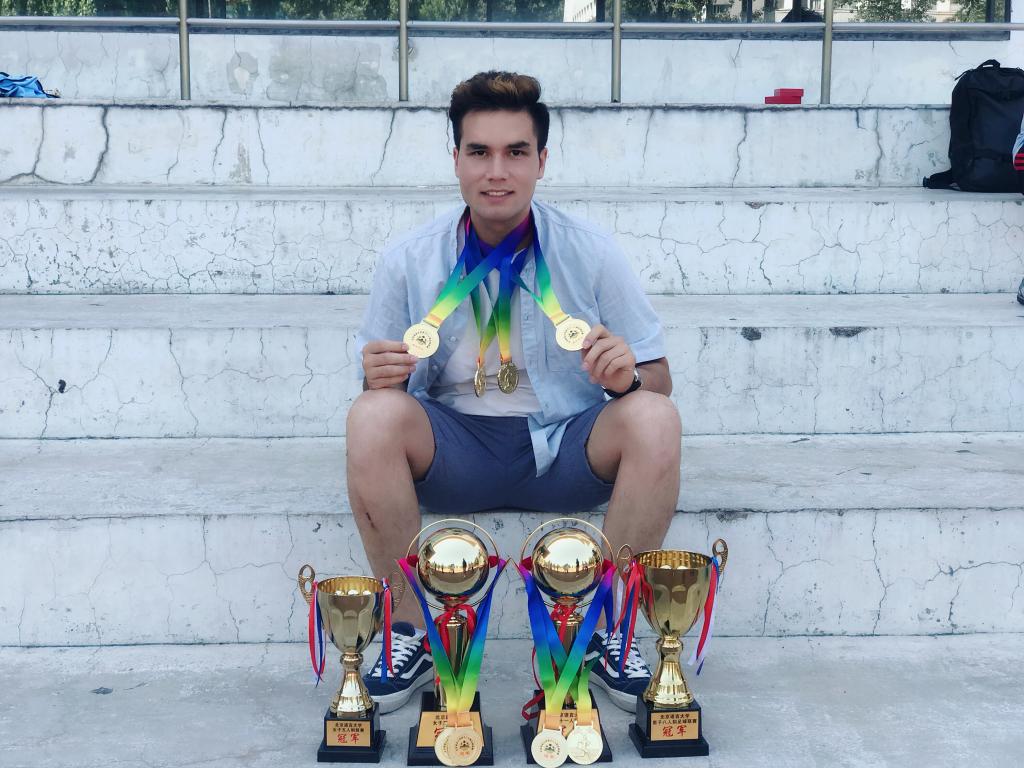 总是让人感觉精力充沛的阿不都在足球场上更是神采飞扬,“足球从五六岁开始就陪伴我”。他在小学二年级就成为了校足球队队长,现在也是北语足球队队长。身为队长的阿不都总是在团队陷入困境的时候能够挺身而出,为团队坚持拼搏到最后一分钟。“我很享受那种拼搏的感觉。”他在小学就有了第一份个人荣誉“最佳球员”奖。在大学期间,他从数百个中外学生中脱颖而出,荣获了JFC国际青年足球比赛华北赛区的“最佳射手”,并跟球队一起举起了冠军奖杯。“在北京市大学生足球比赛中我们学校虽然男生数量不多,但成为了八强的常客,我们的团队很厉害很团结。”阿不都在校内比赛中代表人文社会科学学部的各类比赛中也多次荣获了冠军,自己也有了“最佳射手”“最佳球员”“助攻王”等十多项个人荣誉。“这些都离不开教练和队友的帮助,获得这些荣誉我很开心,更多的是感动。永远忘不了跟队友一起因进球、赢球而高兴的时刻,也忘不了因失利而伤心落泪的那些时刻。足球给我带来了很多珍贵的回忆,也带给我很多好兄弟。”