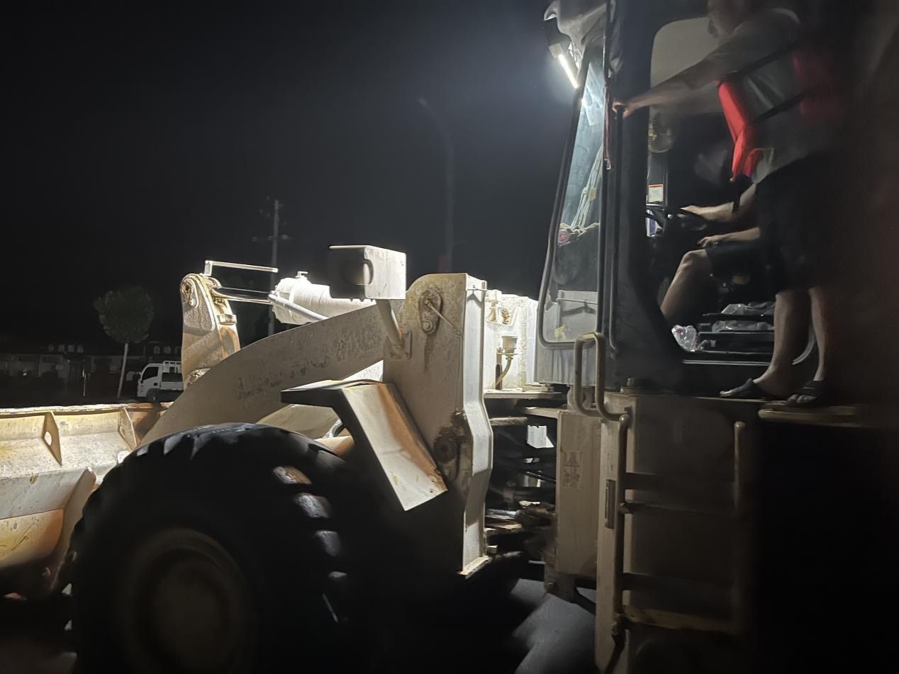 我和另外一位当地的志愿者先开车去找铲车。走到水深难以继续前进的地方,终于找到了铲车,并把物资送上了铲车。铲车司机也是当地人,听到消息之后一直在忙救援,也免费帮我们送达了物资。幸运的是,范阳医院最终并没有人员伤亡。