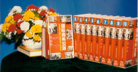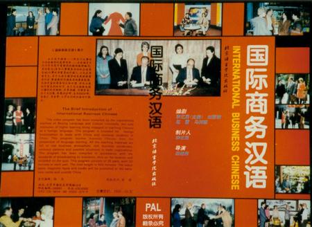 在这种背景下,当时的校图书馆(含校电教中心)和汉语学院的几位有经验的老师,经过长期酝酿和准备,在广泛调查和研究的基础上,把视野瞄准英、法世界大语种第二语言教学和多媒体教学的制高点上,于 1995-1996年编写和制作了有相当气势的完整的包括“视”和听、说、读、写的立体化教材《国际商务汉语》。本套教材包括文字本教科书(上、下册,75万子),录音带(6盒),录像带(10盘,600分钟,当时很少有光盘)和电视教学片(课堂教学版和电视播放版)。