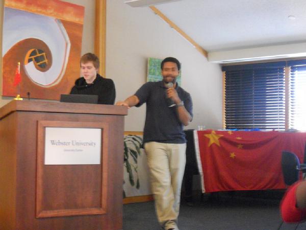 本次宣讲推介活动邀请了曾在北京语言大学留学的韦伯斯特大学在校学生John和Eric介绍了个人的留学经历,他们的介绍,辅助以个人在华期间拍摄的大量照片,就留学中国期间的学习与生活情况做出了直观生动的说明。韦伯斯特孔子学院中文项目主管方莉老师就中文项目的相关情况和留学中国以及孔子学院奖学金的相关事宜,向参加活动的该校师生做了具体而详细的介绍。