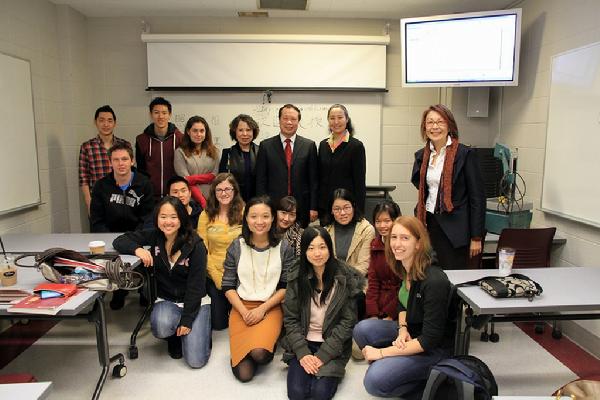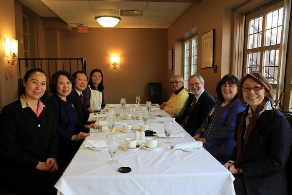 2012年11月21-22日,北京语言大学代表团应邀访问了麦克马斯特大学孔子学院。代表团由北京语言大学副校长赵旻教授、北京语言大学孔子学院工作处陈丽霞处长及翻译等三人组成。代表团考察了麦大孔院的教学工作,与孔院教师和志愿者座谈,并与麦大校长会晤,共商孔院事宜。