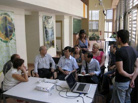 2012年 5月6日至9日,由曹志耘副校长率领的北语代表团对哈瓦那大学和所属孔子学院进行了工作访问。作为此行的主要任务和目标,北语代表团在哈瓦那大学、哈瓦那历史学家办公室和哈瓦那孔子学院有关人员的陪同下,视察了正在改建中的孔子学院永久校址工地并采集了大量照片。代表团还认真听取、审阅和询问了工程建设的有关报告,其中包括:负责改造修缮原太平洋酒楼的单位——哈瓦那历史学家办公室投资处主管Edrik工程师所做的工程进度报告;承担建设任务的建筑公司质检官员Yanexi Castellano工程师所做的工程质量监督报告以及哈瓦那大学投资处处长Javier Cordero Orta做的第一阶段工程和第二阶段工程报告。代表团表示,在哈大孔院提交完整的第一阶段工程决算和第二阶段工程预算报告后,将积极推动第二笔款项及时到位。