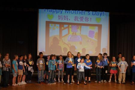 Lake Center小学的学生为即将到来的母亲节唱中国歌《我的好妈妈》