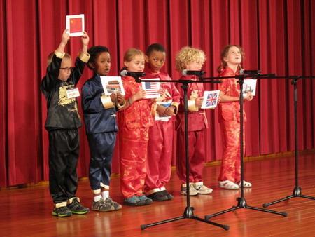 博仁小学孔子课堂的学生代表还表演了精心准备的中国歌舞节目,博得了使馆工作人员的一致好评。