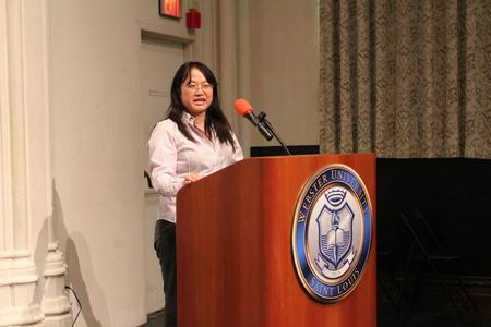 一年一度的“快乐汉语”大赛已经成为了美国中西部地区中文学习者的盛大节日,得到了汉语和中华文化爱好者和汉语教师的广泛关注,今年已是本项活动的第四个年头。四年来,在国家汉办和芝加哥领事馆的指导和支持下,韦伯斯特大学孔子学院一直将“快乐汉语”比赛视为一个为所有汉语和中华文化爱好者展示自己、相互交流、共同提高的平台。此次比赛的报名参赛人数达到了往年的两倍,共有一百余名参赛选手和63个参赛节目。比赛节目分为“语言”与“才艺”两类,在参赛选手的精心准备和指导教师的悉心指导下,所呈现的节目可谓种类繁多,别具一格。如有探讨中国文史、社会方面的“中文诗朗诵:我的中国梦”,“中国户口制度与新移民”,“离婚对孩子的影响”,“谈鲁迅与胡适”;有轻松活泼,引人入胜的“小品:虎妈”, “才艺表演:大笑江湖”,“蒙古舞:在那遥远的地方”,“中文歌:因为爱情”;有极具中华传统文化色彩的“中国传统舞狮”,“中国武术”,“相声:姜昆学英语”,“现场国画:牡丹亭”,“话剧:仓颉造字”;也有极具当代中国特色的“小品:在中国上学”,“钢琴独奏:梁祝”,“演讲:高尔夫球在中国”,“男声二重唱:我和你”等。虽然选手们的发音、语调和用词都算不上完美无瑕,舞美、服装、编剧也称不上专业,但是他们所展现出来的那份对汉语、对中华文化的认真与热爱,着实让人感动。