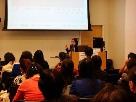 4月28日,大华府2012春季中文教学研讨会在乔治梅森大学拉开帷幕,孔子学院中方院长王丽虹,美方院长高青出席了本次会议。大华府地区地区80多位在各个机构从事中文教学推广工作的教师济济一堂,研讨如何结合本地区实际情况进一步提高教学水平。该研讨会由乔治梅森大学中文部主任兼乔治梅森大学孔子学院教育院长张宽教授主持,共邀请了多位资深汉语教师进行专题讲座,其中,来自北京语言大学的孔院中方教师王静和杨宁分别就汉语本体和汉办教材做了精彩的讲座。经过精心筹备,今年的教师研讨会将研讨范围及内容进行了横向及纵向的双向延伸。这一次研讨会的安排具备以下三个特点。