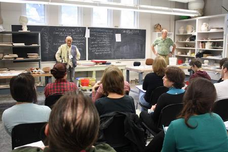 活动的第一项是中国陶瓷制作表演。活动设立在南卡大学艺术系的陶瓷工作坊。工作坊邀请到了在景德镇创建了三宝国际陶艺村的艺术家李见深,以及来自于华盛顿的私立艺术学院马卡莱斯特学院的瓷器教授加里?埃里克森,在南卡大学的瓷器工作室与学生现场切磋技艺。两位艺术家先就各自关于瓷器制作的理念与经验侃侃而谈,在之后的实践操作中,则边与学生现场交流,边进行制作展示,现场答疑解惑,为在场的学生与其他观众提供了新的途径来认识和理解中国的陶瓷制作艺术。