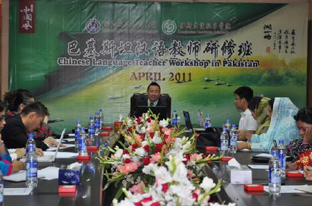 此次研修班作为前次巴基斯坦汉语教材教学研讨会的延续,同时也是打造伊斯兰堡孔子学院作为巴基斯坦汉语教学资源中心与汉语交流平台的重大举措。研修班为期一天,分“专题讲座”和“汉语示范课教学录像展示”两个专场,会上,与会专家学者与各地教师代表就如何进一步提高巴基斯坦汉语教学水平,优化本土化汉语师资队伍以及整合汉语教学资源等问题展开了热烈的讨论。