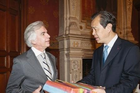 图二:孔泉大使利用出席第十届汉语桥开幕式之际会见拉罗谢尔市市长马克西姆博诺先生