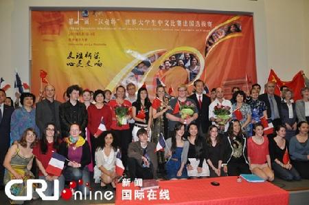 经过汉语笔试、演讲和才艺表演环节的角逐,来自巴黎七大孔子学院的古思万、马逗以及来自拉罗谢尔孔子学院的安娜玛丽亚,分别获得本次比赛的前三名。获得本次比赛前两名的选手将代表法国到中国参加“汉语桥”比赛的决赛。拉罗谢尔孔子学院的安娜玛丽亚凭借成功表演中国已故相声大师马三立的经典段子《逗你玩》,获得赴华观摩比赛的资格。本次比赛组织方驻法使馆教育处还告诉大家一个好消息:凡入选来拉罗谢尔参加此次复赛的所有40名选手,均获得资格申请中国国家汉办孔子学院的奖学金,于暑期赴北京语言大学参加4周的汉语实践。