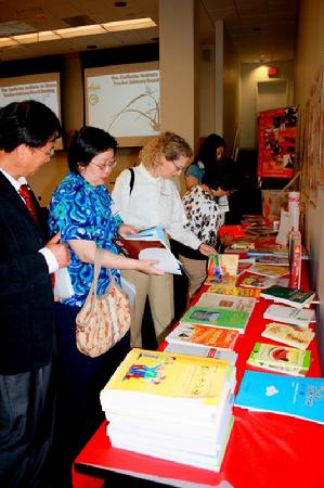 乔治梅森大学孔子学院为此次教师咨询会筹备良久。会议开始前,与会嘉宾首先参观了梅森孔院的“中文教学资源暨中国文化百宝箱展”。中文教学资源均由国家汉办赠送,而“中国文化百宝箱”则是梅森孔院最近刚刚完成的一项大工程,百宝箱内包含中国文化的各种实物及文字介绍,供本地中小学生学习中国语言文化用。