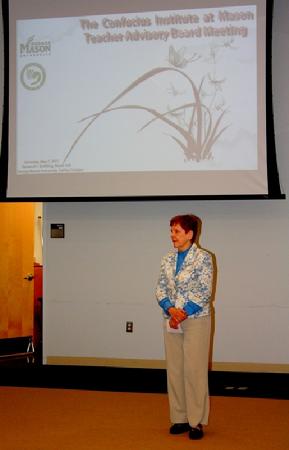 咨询会由美方管理院长高青先生主持,中国驻美大使馆教育处位东先生和张晋女士首先致辞,他们对两年来乔治梅森大学孔子学院为本地中文教育和中国文化宣传做出的大量而富有成效的工作表示感谢,并希望梅森孔院继续为中美友好往来与交流多做贡献。随后,中方院长郭风岚教授和美方教育院长张宽教授分别介绍了梅森孔院近两年来中文教学的建设与发展情况及其远期目标。乔治梅森大学副校长兼梅森孔院总理事Joy Hughes博士做了主旨发言。Hughes博士重点介绍了梅森孔院”Traveling Trunk”即“中国文化百宝箱”项目,并希望与会教师能够更多地支持梅森孔院的工作,为梅森孔院的发展出谋划策,使梅森孔院未来能够更好地为华盛顿地区的中文教学服务。