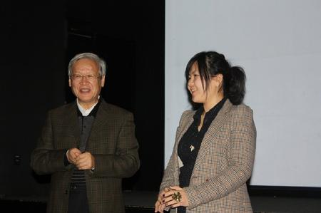 图一:谢飞导演为观众讲解电影拍摄背后的故事;