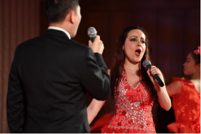 招待会上,受邀此次演出的演员们呈现了众多精彩绝伦的歌舞与杂技节目。整场演出以民族群舞《锦绣中华》开场,演员们身着色彩斑斓的中国少数民族服装,载歌载舞,为晚会奠定了欢快喜庆的气氛。法国歌手安妮·夏洛特·蒙特维尔(Anne-Charlotte Montville)女士深情地演唱了中国著名传统歌曲《茉莉花》,与中国歌手匡敏先生携手为大家带来了《我爱你中国》,他们高亢嘹亮的歌声把晚会的气氛推向了高潮。演员们的精彩演出配以绚烂的舞美,使整台节目美轮美奂。出席晚会的嘉宾及到场的中德观众被深深吸引,不时发出赞叹,在节目结束后纷纷报以热烈的掌声。