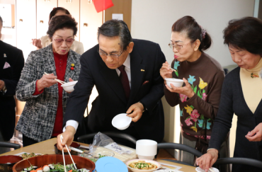 中日美食制作者们精心准备了美食,希望在中国新年的头一天,以中日美食为载体,互相交流两国文化,增进两国人民友谊,给大家带来了舌尖上的美食享受。关西外大孔子学院教师及志愿者们制作了饺子、包子、红烧肉、酱牛肉、麻辣香锅、麻婆豆腐等地道的中国美食;日中友协的代表们则制作了乌冬面、天妇罗、关东煮、寿司、章鱼烧、红豆糯米糕等极具日本特色的美食。精心制作的美食,色香味俱全,令人口舌生津,食指大动。在美食交流品鉴之前,制作者们一一介绍了各自的菜品口味特点及所承载的文化意义。随后,到场宾客开始自由品尝。在品尝美食的同时,宾客与制作者们也进行了热情的交流,现场气氛十分热烈。各种美食受到了大家的欢迎和喜爱,会场不时传出“好吃”、“美味しい”的赞叹声。来自大阪市立大学的两位教授第一次参加关西外大孔子学院的文化活动,对活动的组织和内容赞叹有加。品尝环节结束时,人们的脸上都是满足和幸福的表情。