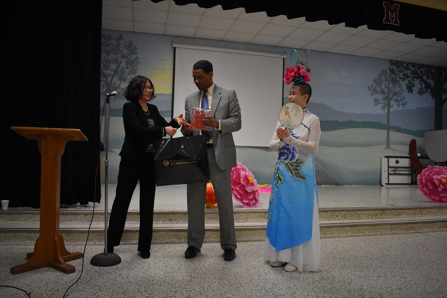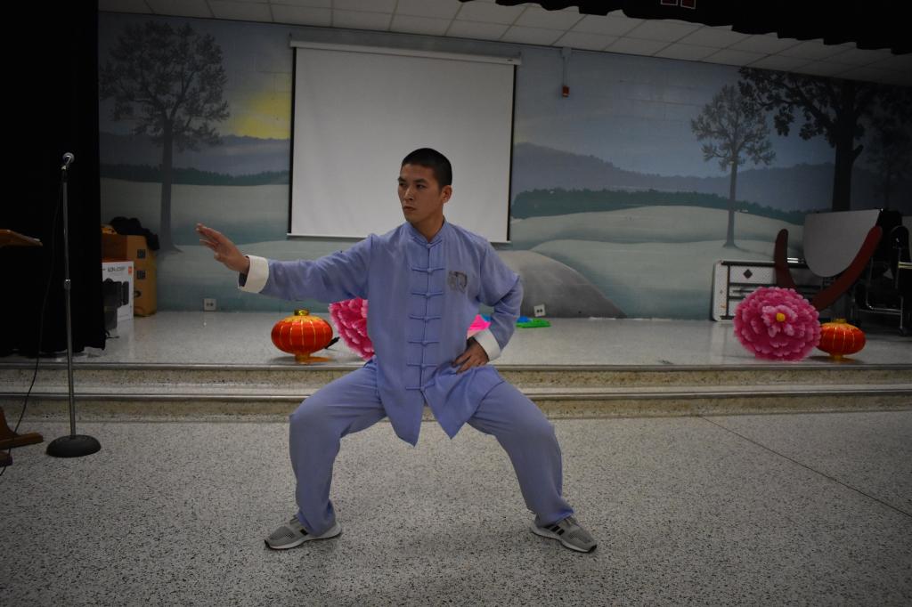 1月29日晚上,米尔伍德小学校长艾特肯森女士宣布该校家长会正式开始。在简短的仪式之后,本次家长会的重头戏——南卡孔院文艺演出正式拉开了帷幕。为了参加这次文化活动,南卡大学孔院做了精心的准备。演出开始之前,首先李越院长代表南卡大学孔院发表讲话。然后南卡孔院为米尔伍德小学预备的精彩节目悉数登场。第一个出场的是李晓民老师。李老师唱功深厚,年轻时曾经在陕西省青歌赛中获得一等奖。最近又在高手云集的首届南北卡好声音歌唱比赛中担任了评委。李老师带来了一首通俗歌曲《拥抱》,虽然现场的美国学生和家长们不懂中文,但是李老师浑厚深情的演唱依然感染了在场的每一位观众。第二位上场的是南卡州的资深华人舞蹈艺术家殷岚老师。殷老师带来的是一段具有浓郁的京剧艺术风格的舞蹈。舞台上优美灵动的舞姿,再配以京剧《梨花颂》的音乐伴奏,使台下观众看得如痴如醉。第三位上场的是太极师傅唐毅老师。唐老师表演了一段极具观赏性的陈氏太极。唐老师太极表演动作柔和但是充满力量,只是短短的五分钟左右的时间,唐老师的太极服后背已经被汗水湿透。最后压轴出场的是来自内蒙古的功夫女侠张一帆。张一帆表演的九节鞭将中国武术的力量和美感演绎得淋漓尽致,将全场表演推向了高潮,赢得了全场观众的阵阵掌声和欢呼声。