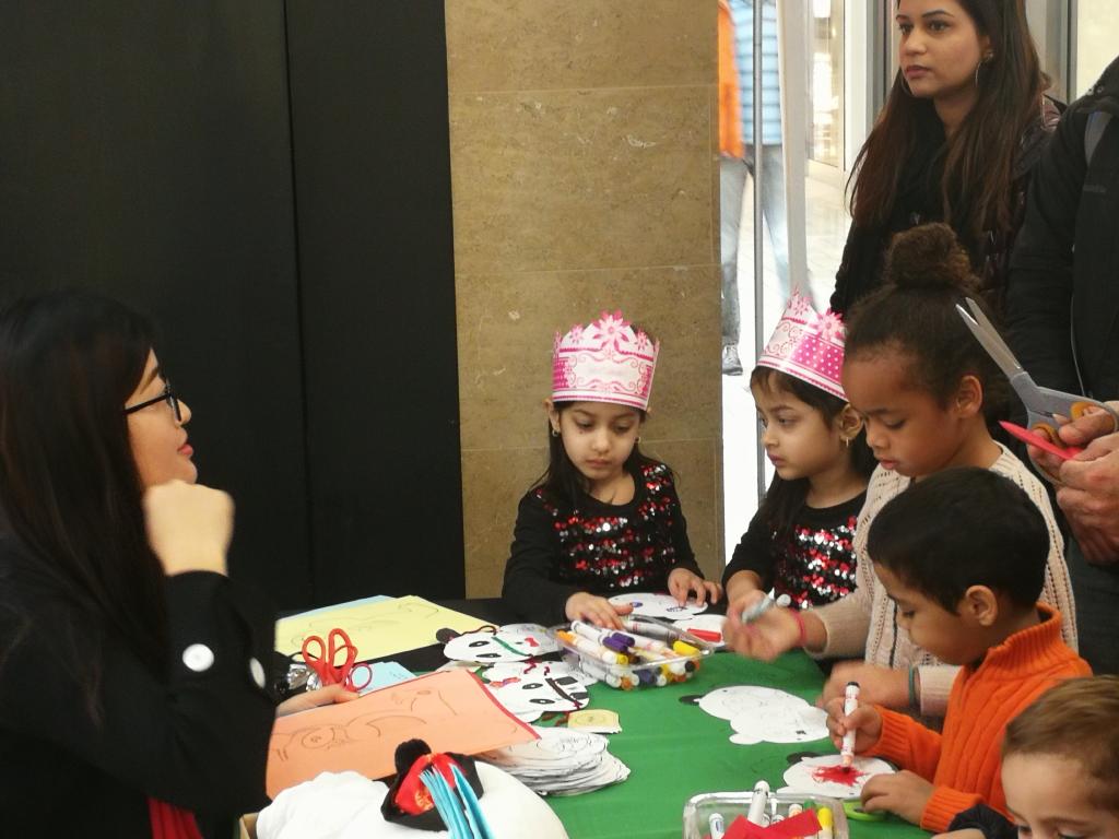 当地时间2月2日,腊月二十七,正是中国人红红火火准备过新年的日子。梅森孔院的老师们受邀来到美国大型购物中心泰森角(Tyson’s Corner)举办新年庆祝活动。梅森孔院为此次活动准备了猪年剪纸、熊猫涂鸦等多个项目,活动吸引了上万人参加。