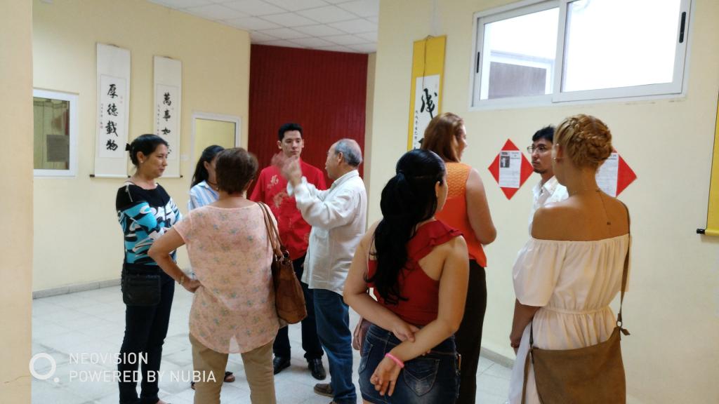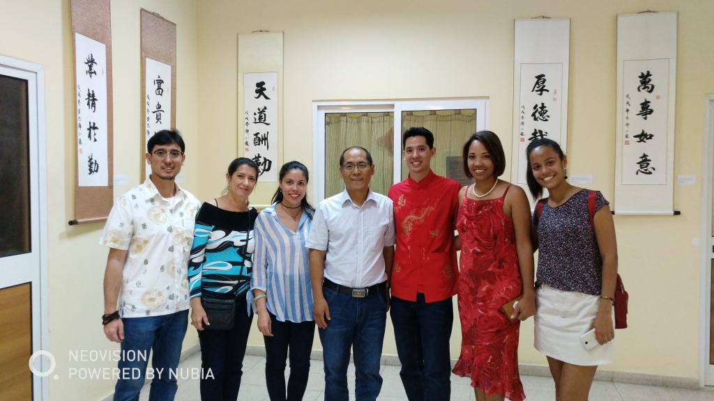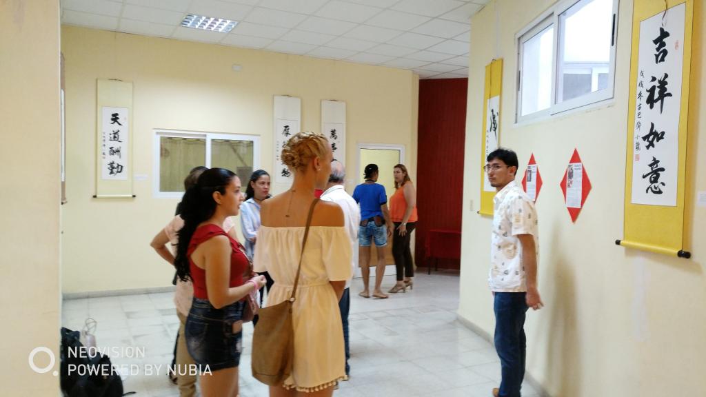 为了配合书展,孔院作为第二场地,2月7号当天还举办了中文书法展和《舞狮在古巴》新书发行仪式。书法展出了Fidelito Alay(邓小龙)的个人习作共8副,作者原是孔院学生,后来成为孔院志愿者教师,自幼酷爱书法、篆刻、雕刻等中国传统艺术,并且在2016年曾获得大学生汉语桥古巴赛区冠军。《舞狮在古巴》的作者邓颖旭,是古巴第二代华侨,在父亲的影响下,一家人都致力于传承中国文化。他本人酷爱武术和舞龙舞狮。书中记述的是自上世纪50年代开始在古巴武术和舞龙舞狮文化的逐渐发展。该书也是研究古巴华侨历史的第一手资料。