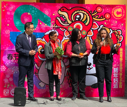 舞狮结束后,孔院中方院长李程和外方院长珍妮向大家送上新年祝福,祝愿孔院学生们在新的一年里万事如意,汉语水平更上一层楼。墨国大语言、语言学与翻译学院主任卡门也代表大学祝贺孔院全体师生们春节快乐。