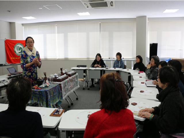 2月12日,农历正月初八,春暖乍寒,正是饮茶好时节。孔子学院一行人来到日本文化机构EARTHTIME俱乐部,成功举办了中国茶艺讲座及茶艺体验活动。清悠的茶香、雅致的茶席、舒缓的乐曲,诸多中国元素极具魅力,为前来参加活动的市民们带来了全新的体验。