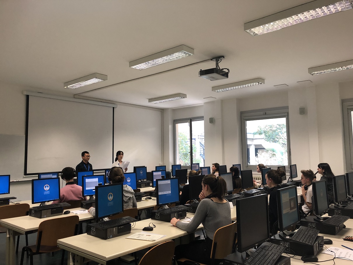 3月23日,米兰圣心天主教大学孔子学院顺利举办了2019年度首场汉语水平口语考试(HSKK)。汉语水平口语考试分为初级、中级、高级,共有26人报名参加了这次考试;其中报考初级有11人,中级13人,高级2人。参加此次考试的学生多为在校大学生,且以意大利本土考生为多,只有一名高级水平的考生为华裔。