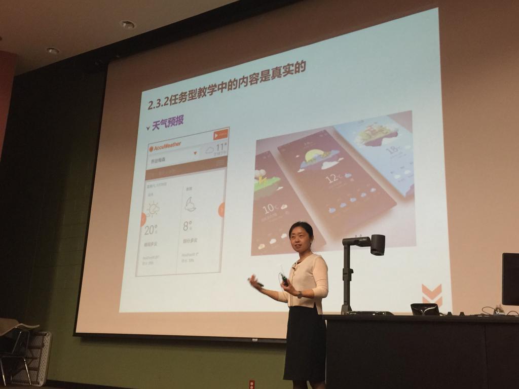 乔治梅森大学孔子学院的于天昱老师发言的题目是“任务型初级汉语教学”。于老师介绍了任务型教学法在中文教学中的产生背景、特点、任务的设计及教学评价几个方面的内容。于老师结合自身多年的教学经验,针对各阶段汉语教学,给出了具体实施建议,得到了老师们的认同。