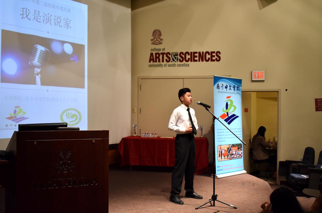 全部比赛结束后,南卡大学孔子学院外方院长叶坦教授和中方院长李越教授为获奖选手颁奖。李越院长还代表南卡大学孔子学院讲话。李院长首先向各位获奖选手表示祝贺,然后高度评价了南卡中文学校在南卡州的华裔学生中间推动中文和中华文化教育方面所取得的成绩,同时邀请南卡中文学校学生参加南卡大学孔院主办的“南卡中文之星大赛”。相信明年的“南卡中文之星大赛”因为华裔学生的参加,水平一定会更高,也更加精彩!