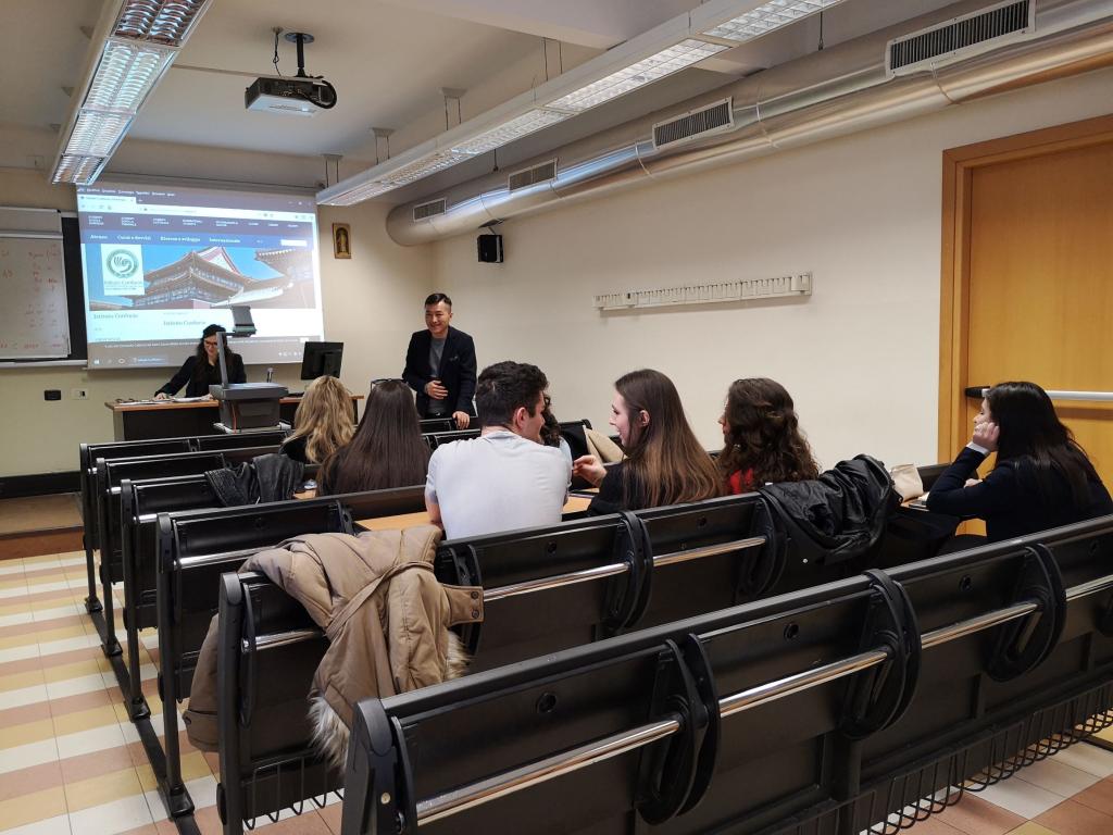 为促进汉语国际推广和中国文化传播、响应孔子学院总部/国家汉办孔子学院奖学金计划、帮助我校学生申请孔子学院奖学金,米兰天主教圣心大学孔子学院于当地时间2019年3月28日下午,在米兰校区举行了孔子学院奖学金说明会。孔子学院院长董立钧和外方秘书谢唯雅(Silvia)出席并主持了此次说明会。