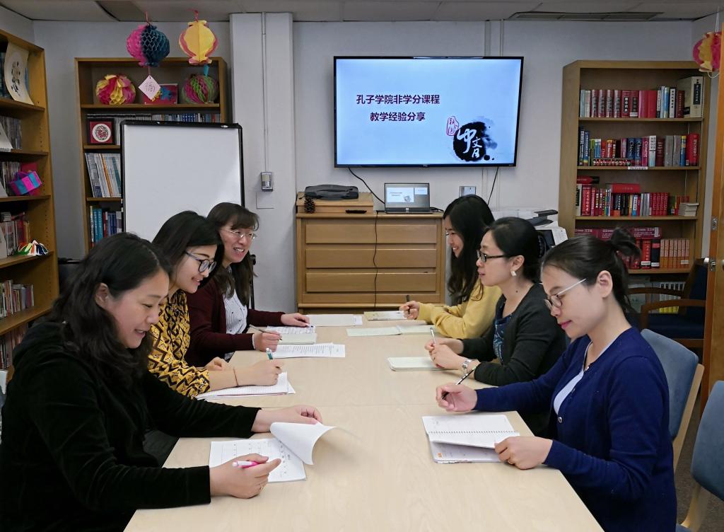 4月20日,孔院老师相聚一堂,举办以“孔子学院非学分课程教学经验分享”为主题的教师工作坊,就如何进行“非学分课程”建设,如何上好“非学分课”分享心得、交流经验。“非学分课”一直是梅森孔院教学工作的主要内容,也是孔院的招牌课程。许多学员在这里不仅学到了汉语,还交到了朋友,与孔院老师亦师亦友。孔院老师在这门课上也倾注了许多热情。通过交流,老师们总结了一些适合本地“非学分课程”的好方法,如:张晓明老师提出自编教材、因地制宜、按需教学的思路;于天昱老师提出交换角色、课堂充分互动的思路;李华老师提到走出课堂、利用一切可用资源进行汉语实践的思路;董鲁霞老师提出融入任务、学以致用的思路等等。老师们在讨论中还讲述了许多学生学汉语的小故事,为学生的点滴进步感到欣慰。