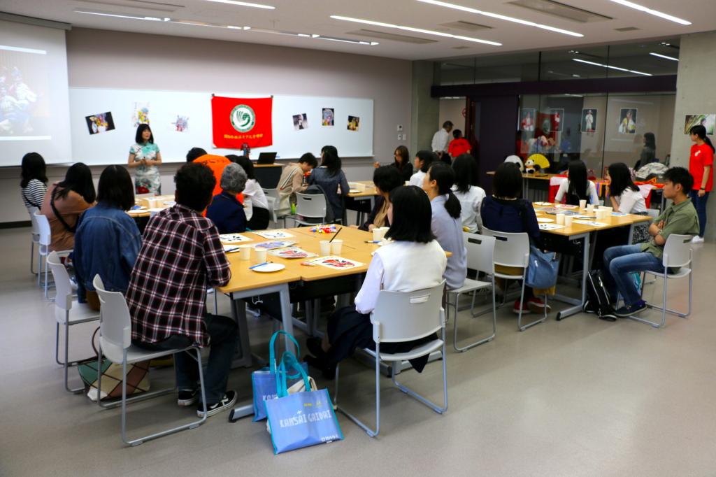 6月16日是关西外国语大学的第二次校园开放日,孔子学院为前来参加活动的高中生和家长们准备了一场颇具特色的中国京剧文化体验。美轮美奂的京剧图片、各式各样的脸谱图案、栩栩如生的京剧人偶装点了整个教室,明亮的灯光打在展桌上,一袭长袍马褂、一袭凤冠霞帔显得格外地耀眼。高中生和家长们无不被深深吸引,纷纷饶有兴致地走了进来。