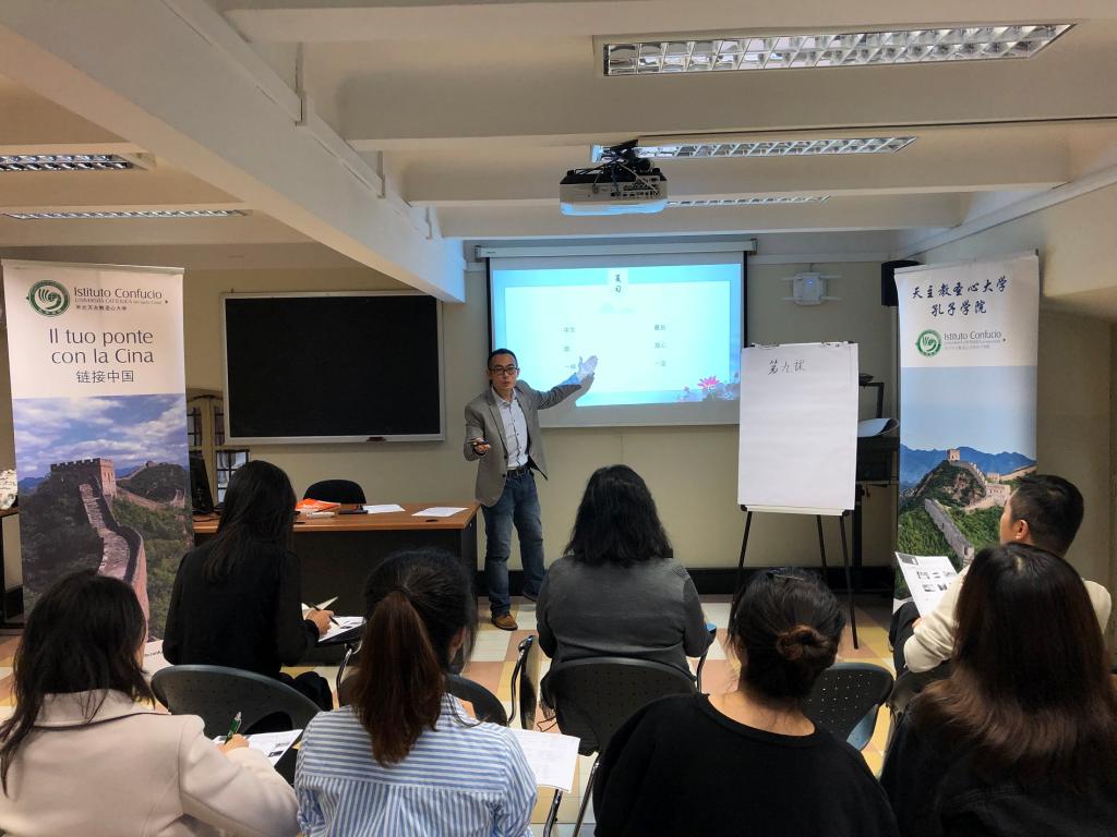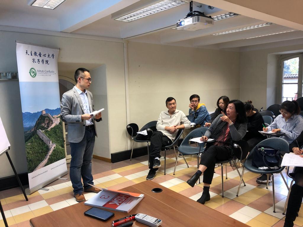 当地时间10月29日下午,米兰天主教圣心大学孔子学院举办了本学期“学无止境”系列教师培训的第三次活动——教学研讨会。“学无止境”系列活动的举办旨在为教师们提供一个分享教学经验及方法,交流教学策略和心得的平台。本次研讨会采用专人主讲,现场讨论及点评的方式进行。主讲人是我院公派教师刘畅,研讨会主题的依然围绕“如何上好一堂汉语课”展开。孔院全体教师及志愿者均参加了此次活动。