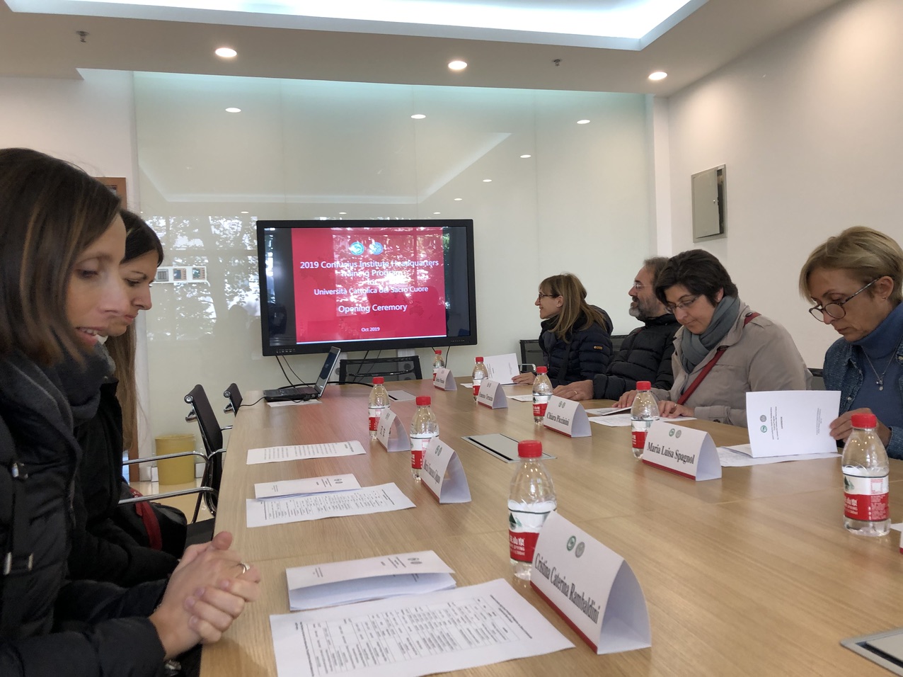 首日一行人先来到了北京语言大学,在此次访华之旅的开幕式会议中强调了如今中意两国之间双边关系合作的重要性,表达了希望增强两国,两校之间文化交流的意愿。此后各位老师欣赏了中国传统茶艺,浓郁的茶香让他们心旷神怡,品尝了北京特色烤鸭,酥脆的鸭肉让他们流连忘返,最后他们还观看了中国古老武术—太极拳,流畅的动作让他们连连惊叹。