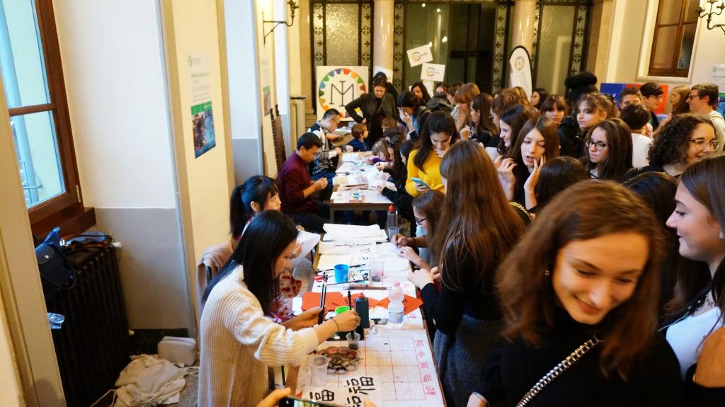 适逢“孔子学院日”16周年和米兰天主教圣心大学孔子学院成立10周年之际,圣心孔院于当地时间2019年10月27日下午4:00,迎来了一年一度的“孔子学院日”活动。活动设在圣心孔院的教学点——马切利内高中(Istituto Marcelline Tommaseo),活动旨在弘扬中国文化,扩大汉语及中国文化的的世界影响力。来自伦纳迪(Lunardi)、智立(Gigli)、托斯(Tosi)、卡斯那蒂(Casnati)等10余所高中的300多名师生和当地居民参加了本次活动。