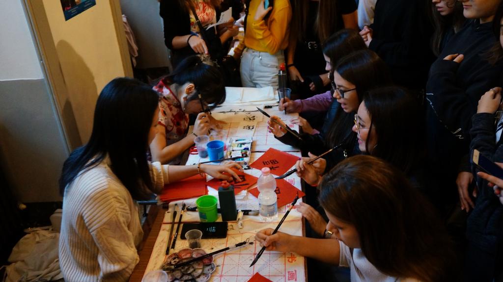 本次活动内容丰富在马切利内高中(Istituto Marcelline Tommaseo)的大厅设有书法、茶艺、绘制京剧脸谱等中国文化展示和体验展台,也有中国传统美食——拉面表演展台等,为观众提供了视觉上的盛宴;与此同时,礼堂也为大家准备了纪录片《A Chinese Sketchbook》和精品小吃,观众不仅大饱眼福,也获得了味蕾上的满足感。参与者不仅能近距离接触到最原汁原味的传统中华文化,更能亲身参与其中,进一步感受到中国文化和汉语独特的魅力。