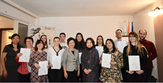11日上午,本次本土汉语教师培训结业仪式在Apollo 酒店隆重举行,锡比乌卢奇安·布拉卡大学孔子学院中方院长王冏女士、大学国际交流处尤清雅(Iulia Gita)以及两位专家一起为参加本次培训的汉语教师颁发了学员证书。王院长对学员们的表现给予了高度赞扬,并且希望大家在今后的工作中再接再厉,为罗马尼亚地区汉语教育事业的发展做出更大的贡献。