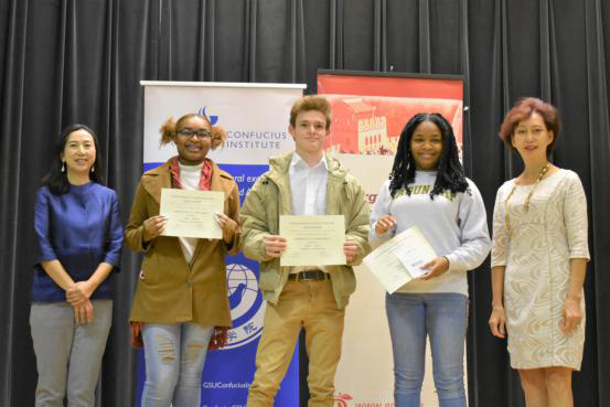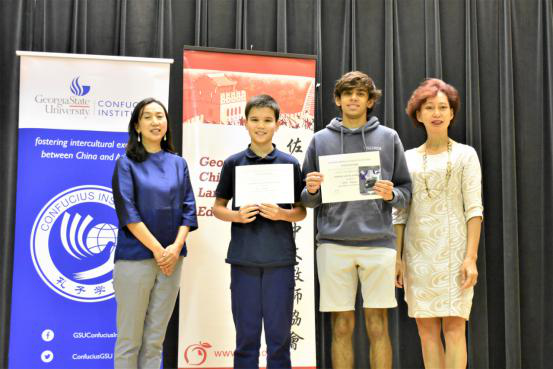 经过角逐,初、中级分别评出一等奖一名、二等奖两名、三等奖三名以及汉语新星奖数名。佐治亚州立大学孔院中方院长朱姝博士和佐治亚州中文教师协会胡慧星会长为获奖选手颁奖,祝贺学生们取得优异成绩,鼓励他们再接再厉。