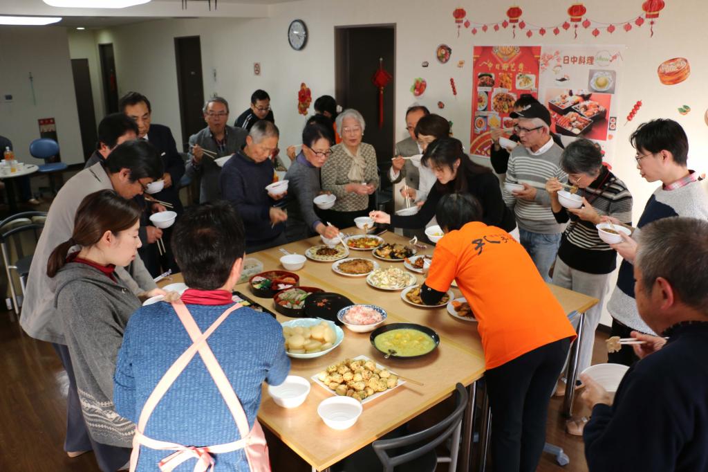 中国的菜系种类丰富多样,南北差异大,口味上有“南甜北咸东辣西酸”之说。孔子学院教师及志愿者们通过研究不同地域的菜谱,推出了具有代表性的中国美食,如:广东的菠萝咕咾肉、新疆的大盘鸡、江西的粉蒸肉以及鲁菜京酱肉丝、乾隆白菜等,色香味俱全。这些菜还根据食材特点取了寓意极好的名字,如:金玉满堂、大吉大利、蒸蒸日上和恭喜发财等等,使大家在享受中国美食的同时,还了解了美食所寄托的美好寓意。此外老师们还手把手教大家学包包子和饺子。日中友协的代表们则制作了日本传统的年饭,种类丰富、色泽鲜艳的食材被摆放在一个个精美的盒子里,赏心悦目。他们还带着大家体验制作了极具日本特色的关东煮和章鱼烧。