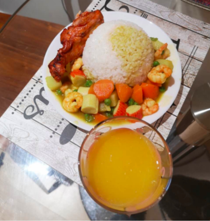 作为活动的组织者和参与者,我在活动中在线“烹调”并“吃播”了自己制作的“中式田园咖喱海鲜盖浇饭”。不仅为成员们介绍了这道美食的制作过程,还对“煮”、“炖”、“炒”……等与烹调相关的词汇的用法进行了讲解。此外,我还将筷子的文化加入其中,比如,展示解析中、日、韩筷子的区别,及为何中国的筷子一端设计为圆柱体,另一端设计为长方体。通过前期的问题铺垫,后期的揭秘答疑,中国文化中“天圆地方”的传统概念得以传达。中国的饮食文化和餐桌礼仪在“吃播”中“润物细无声”。整个直播交流过程,妙趣横生,轻松愉快。我也因此打开了下学期的汉英角活动设计的新思路。